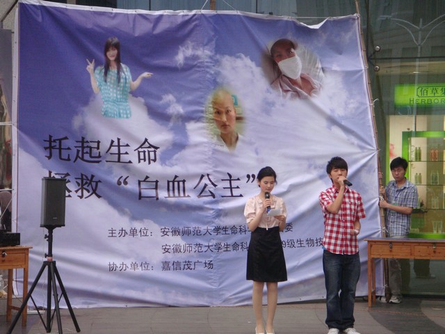 张秀芝,永利3044noc09汉语言文学2班学生,这应该是一个还在青春的光影中洋溢着欢乐的年纪,但她的今天无法快乐,因为她在去年暑假查出自己患了急性白血病。她想活下去,但她面临的是做骨髓移植手术需要花费的30万手术费,这对一个农村单亲家庭来说绝对是个天大的数字。 “病魔无情,人间有爱”。在得知这一情况后,生科院2009级生物技术专业的同学们在学院团委的指导下于5月21日晚在沃尔玛广场举办了一场“拯救白雪公主张秀芝” 的爱心义演活动。参加活动的还有文学院、物电学院、化材学院、音乐学院的志愿者。
