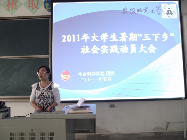 5月21日中午,3044am永利集团官网团委在田楼8103教室召开了2011年大学生暑期“三下乡”社会实践动员大会。学院09级各专业辅导员、各年级学生近300人参加了会议。会议由院团委副书记贾瑞主持。