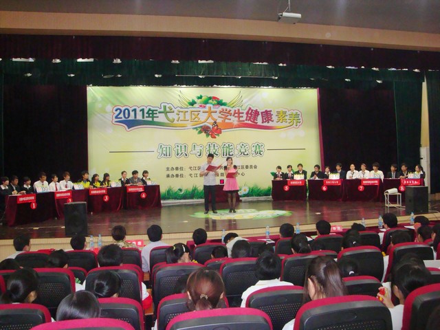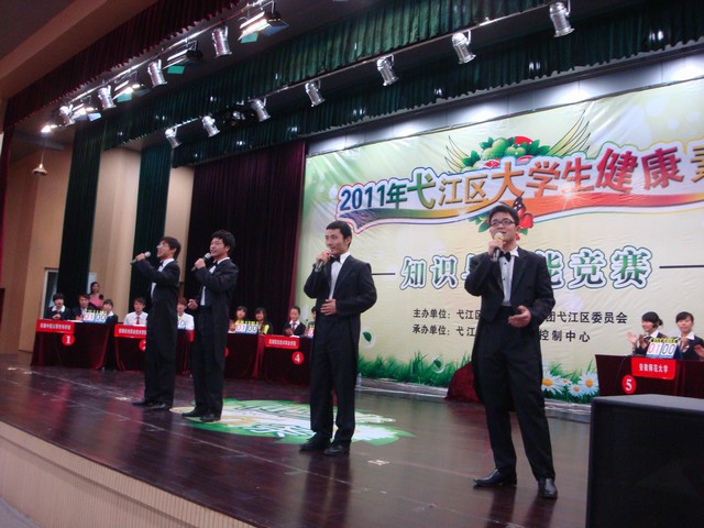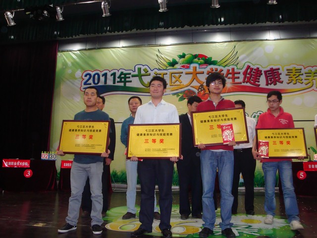 经过生科院团委和大学生保健协会为期将近一个月的校内选拔,4月27日下午,生科院三名选手和50人的啦啦队方阵在领队李古州老师的带领下来到安徽机电职业技术学院代表我校参加2011年弋江区大学生健康素养知识与技能竞赛。