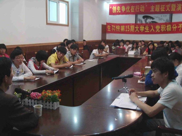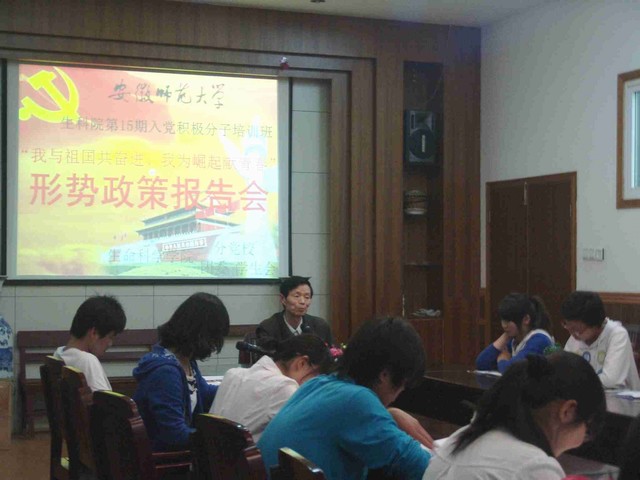 座谈会由院团委副书记、学院第15期入党积极分子培训班班主任贾瑞老师主持,她首先带领我们集体学习了《胡锦涛总书记在庆祝清华大学建校100周年大会上的讲话》,并观看了相关视频。然后09级生物科学的储宇航等十几位同学相继代表发言,他们不但谈到了自己的心得体会,还表示要谨遵胡总书记的教诲,青年是民族的希望、国家的未来,青年学生是国家的宝贵人才资源。党和人民对包括广大青年学生在内的全国青年寄予厚望,作为当代大学生的我们要不断的努力奋斗。随后贾瑞老师鼓励我们当代大学生要锐意进取,积极向上,勤奋学习。