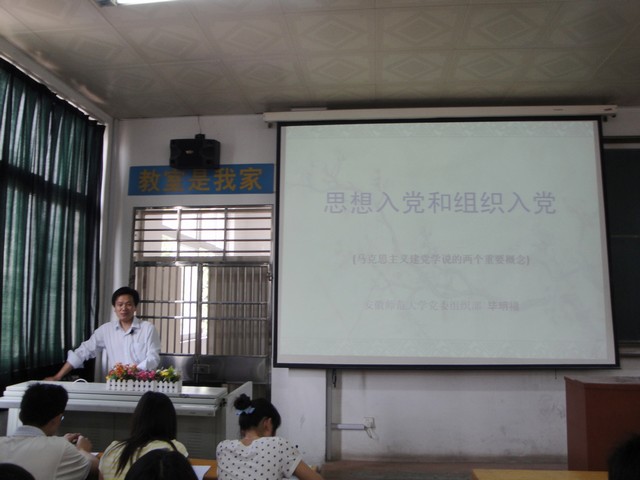 讲座最后,全体学员在毕部长的带领下认真学习了胡锦涛在清华百年校庆上的讲话精神,并就此展开了热烈的讨论。从发言中可以看出,同学们入党动机端正、理论学习扎实,能够用党员的标准严格要求自己,在各方面积极要求进步,对中国共产党党史党章的认识与了解进一步加深。