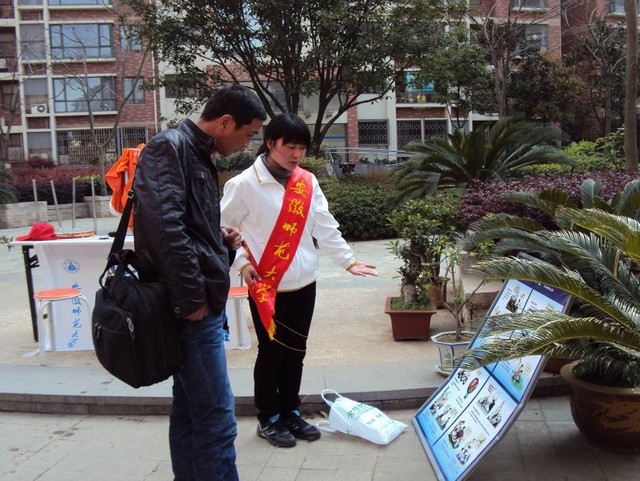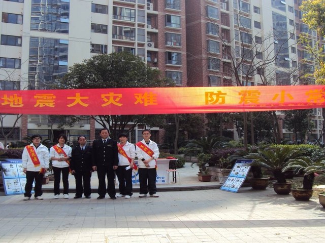 地震科普知识专题系列活动主要包括志愿者进社区宣传、地震局进校园主题讲座以及校园减灾疏散演练三个部分。“地震大灾难,防震小常识”进社区主题宣传活动分别在人流量较多的侨鸿国际花园和安师大教师公寓开展。活动过程中,志愿者通过发放传单和问卷调查的形式,积极与社区人员交流,向他们详细讲解地震注意事项和自救、互救措施,赢到了在场群众的充分肯定与赞扬。社区保安人员的热心加入,更为宣传增加了一道亮丽的风景线。