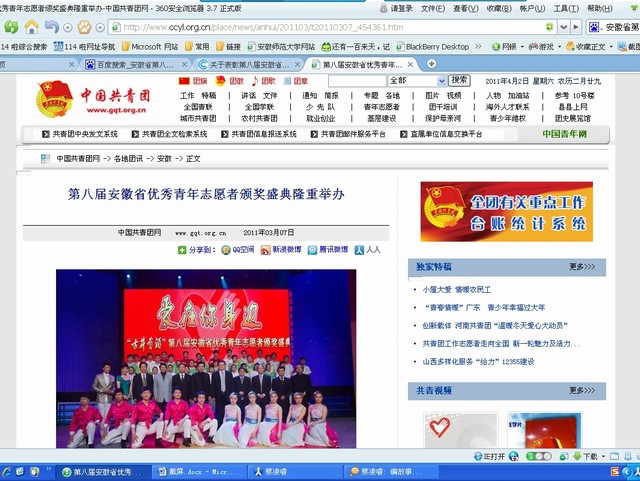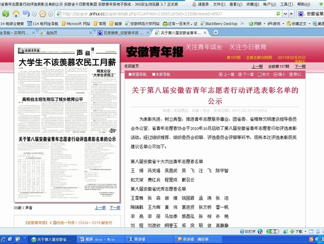 近日,团省委、省文明办、省青年志愿者协会对全省志愿服务先进个人和单位进行了表彰,永利蔡凌睿同学被授予“安徽省第八届优秀青年志愿者”荣誉称号。