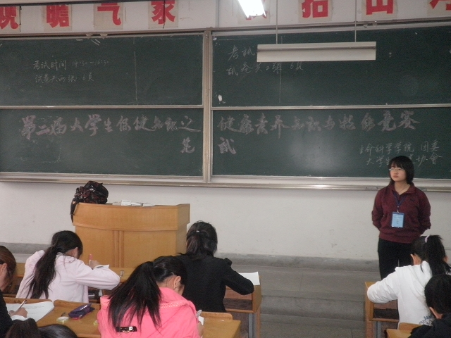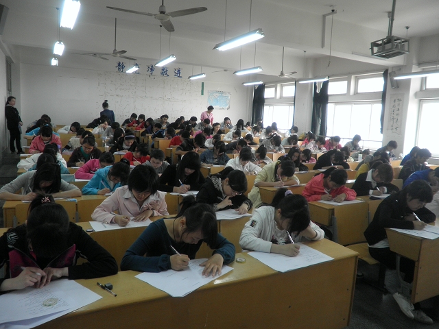 经过班级和协会初选,近百名选手进入院级笔试。4月17日下午2:00起,参赛选手陆续入场,在工作人员详述笔试规则后,考试于2:30正式开始。在考试过程中,监考人员恪尽职守,不断巡视,以确保比赛的公平公正。各位参赛者亦都自觉遵守考试规则,整个考场安静、有序。试卷题量、难度适宜,不少同学胸有成竹,提前交卷。