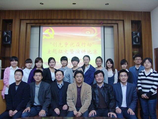 4月19日下午,3044am永利集团官网在院一楼学术报告厅举办了“创先争优在行动”主题征文暨演讲比赛。校党委组织部副部长袁兴龙、校团委副书记邵登辉、校学生处国防教育科科长汪贻洋出席演讲比赛并担任评委,院党政领导、各党支部书记、全体教工党员、学生党员代表观看了比赛。