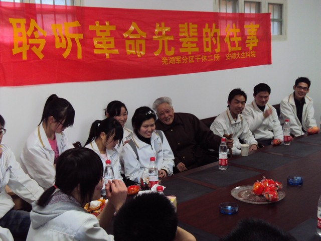 卫生打扫结束后,原皖南军区军政干校政治部组织科科长陈嘉福爷爷兴致勃勃的为我们讲起了他战争时期的往事,讲述了党建90周年的变化。陈老14岁就入党,曾参加过淮海战役、渡江战役。陈老还与大家探讨了就业观与价值观。最后,陈老教导我们要铭记历史,继续弘扬雷锋精神。