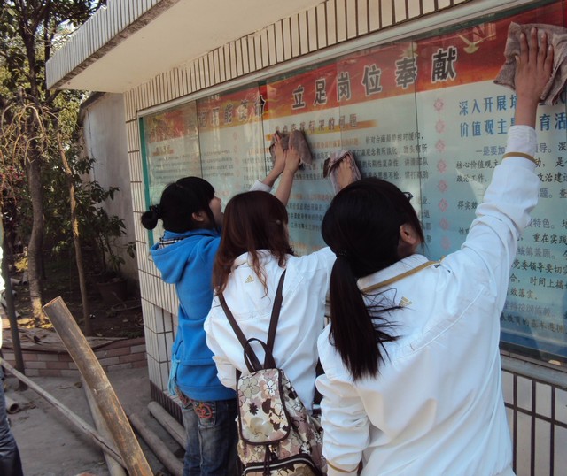 来到干休所后,同学们分好小组,拿着工具,快速地进入到需要打扫的各栋楼,开始清洁楼道,擦拭楼梯扶手,清扫庭院。劳动过程中同学们个个热情高涨,不怕脏不怕累。经过约2个小时的忙碌,各栋楼的卫生死角都被同学们打扫的干干净净。期间,干休所的许多家属都对我们的活动表示赞扬。