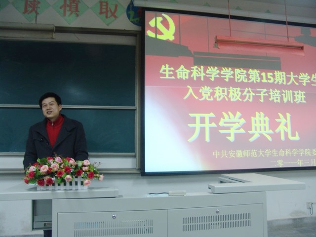 开学典礼在庄严的国歌声中拉开帷幕。贾瑞首先宣读了学院党委《关于做好第15期大学生入党积极分子培训工作的安排意见》(〔2011〕4号)文件并介绍了本期培训班的学员组成、教学和实践活动安排及考核方式,并确定了班委名单。在培训班新老学员代表发言后,周伍副书记代表学院党委讲话,回顾了学院分党校的历史,并向全体学员提出了三点要求和希望:一要明确历史责任,端正学习态度,严格学习纪律;二要认真学习,深入思考,不断提高自身素质;三要充分发挥模范带头作用,做好党组织和青年大学生之间沟通的桥梁。他希望同学们珍惜宝贵的学习机会,努力成长成才,争取在思想和行动上真正入党,为将来建设好祖国,促进社会和谐而努力奋斗。