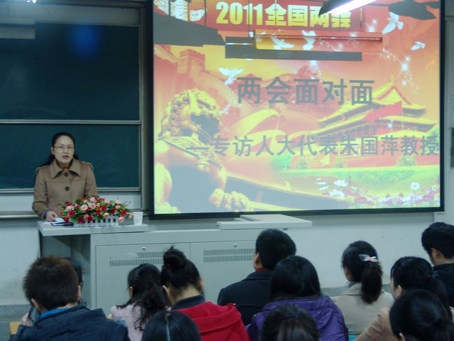 在开学典礼上,培训班还特别邀请全国人大代表、博士生导师朱国萍教授给培训班学员传达2011年全国两会精神。朱国萍教授从民生、大学生就业、环境保护、教育公平、社会保障等方面进行了系统阐述,随后还与学员互动,就学员们关心的问题作细致耐心的解答。