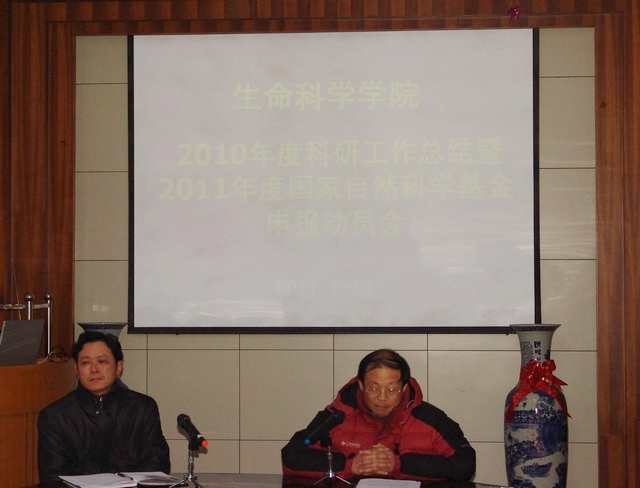 1月13日下午,生科院在学院一楼学术报告厅召开了2010年科研工作总结暨本年度国家自然科学基金申报工作布置会。会议由席贻龙院长主持,学院全体教师参加了此次会议。