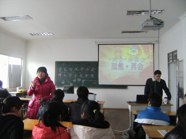 3月2日下午,学院团委在生化楼五楼研究生教室举办了以“创先争优学两会,生科学子促和谐”为主题的“模拟两会”座谈会。院学生会主席魏露、各年级主要学生干部、院学生会以及院三个社团的代表参加了此次座谈会,座谈会由院学生会信访部副部长周宗锴主持。