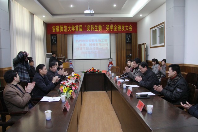 安徽安科生物工程(集团)股份有限公司副总经理姚建平在讲话中表示,是同学们刻苦勤奋的学习精神及企业所具有的社会责任感坚定了他们开始此项义举的决心。他希望同学们珍惜永利3044noc大学优越的学习环境,刻苦成才,将个人的进步发展与社会责任紧密联系起来,实现自身的人生价值,并欢迎广大同学到安徽安科生物工程(集团)股份有限公司实习并就业。