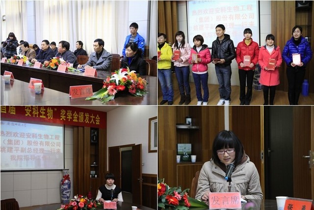 本科生获奖同学代表及研究生获奖同学代表分别进行了发言。她们感谢安科生物工程(集团)股份有限公司和学校对所有获奖同学的帮助和鼓励,并表示要倍加珍惜今天这来之不易的机会,用激情和执着向更高的层次奋进拼搏,营造更和谐、更温馨的校园文化氛围和环境;继续发扬脚踏实地、刻苦钻研的精神,努力拼搏,奋发图强,再创佳绩,用优异的成绩来回报国家、社会和学校。