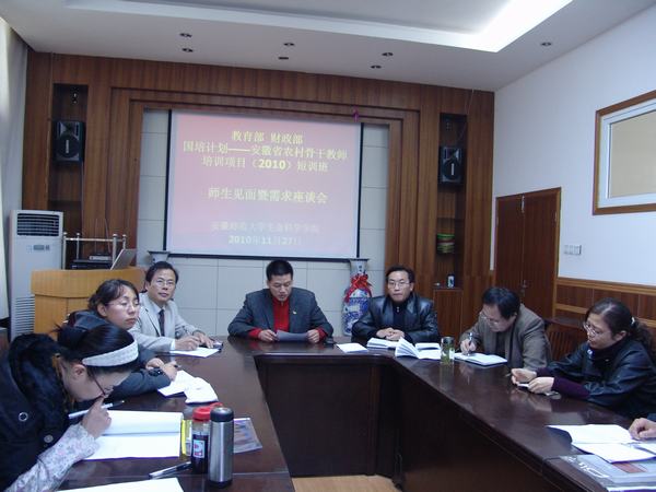 11月27日下午,3044am永利集团官网在学院一楼会议室举行“国培计划——短期培训班”师生见面暨需求座谈会,培训班教师及全体学员出席会议,会议由短期培训班班主任陈明林主持。