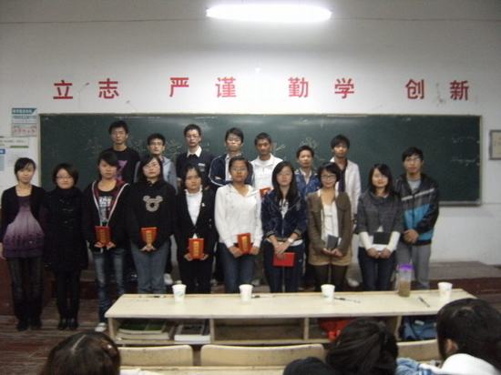 10月15日晚7点,生命科学院学生会宣传部在教学楼1104教室举办了“三字”比赛。生科院各班级推选出的35名选手参加了此次比赛,校学生会主席以及各学院的宣传部部长担任了比赛的评委。