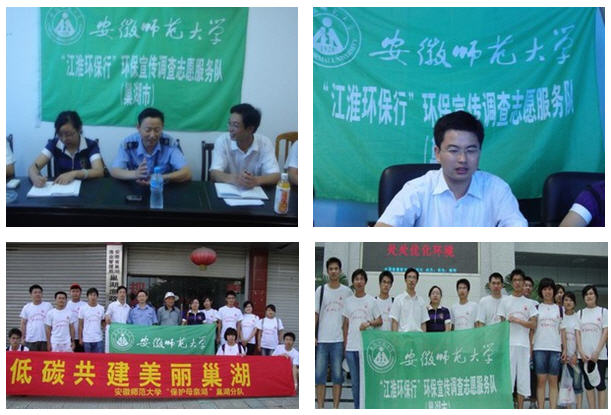 7月8日至11日,生科院“江淮环保行”赴巢湖环保宣传与调查志愿服务队,在生态学博士项贤领老师和09级辅导员贾瑞老师带领下,开展了 “节能减排保护环境,低碳共建美丽巢湖”为主题的社会实践活动。其间,院长席贻龙和院党委副书记周伍代表学院到巢湖慰问并与师生进行了座谈交流。
