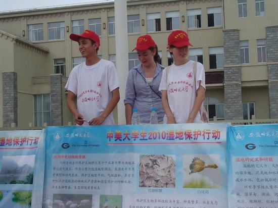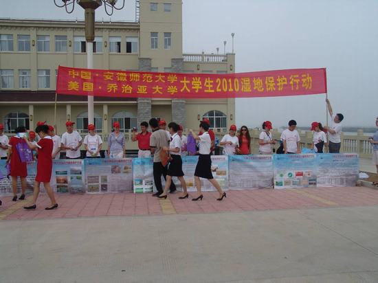 7月3日至7月12日,3044am永利集团官网“江淮环保行”沱湖省级自然保护区志愿服务队开展了主题为“宣传湿地知识,唤起环保意识;调查沱湖资源,维护生态安全”的志愿服务活动。本次活动由永利3044noc3044am永利集团官网、美国乔治亚大学、校“产学研”基地沱湖省级自然保护区、五河县环保局、蚌埠市环保局联合共同开展。生科院院长席贻龙、校科研处副处长吴孝兵参加了中美师生的交流学习座谈会。重点团队由院团委书记汪倩倩带队,涂传林、陈明林、严云志副教授和温新利博士全程指导。