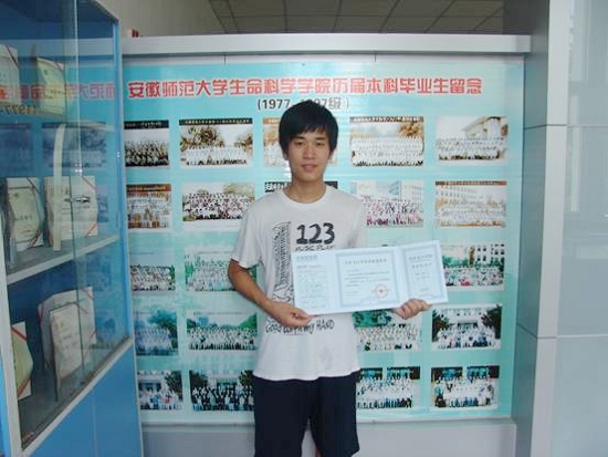 陈之龙同学是空军今年在安徽省普通高校本科毕业生中招收的3名空军飞行学员之一,也是我校唯一一名,这是陈之龙同学个人努力、家庭培养和学校教育的结果,是他个人、家庭、学校乃至安徽人民的光荣,我们对他即将成为一名光荣的空军飞行学员表示热烈的祝贺,祝愿他早日成长为一名优秀的祖国蓝天卫士!(生科院 王影)