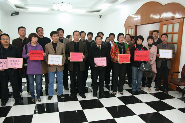 全体教职工积极响应党中央号召,与灾区人民心连心,继续发扬永利乐善好施的优良传统,尽自己微薄之力,向灾区同胞伸出援助之手,用实际行动鼓舞玉树同胞的斗志,增强玉树同胞战胜灾难的信心和决心。本次捐款人数达84人,其中离退休教工7人,1名离退休教工保姆捐款40元,捐款额达9840元。(生科院 李古州)