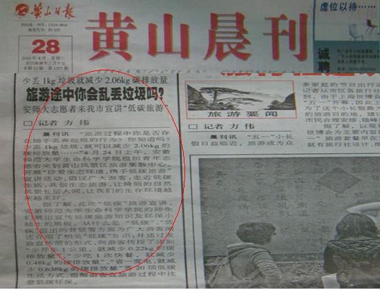 本次活动是生科院团委为响应团省委、校团委开展“生态安徽青少年活动月”的倡议而举办。活动结合低碳旅游热点,精心策划、认真开展,使“低碳”概念深入游客和商家脑海,引起广泛反响,《新安晚报》、《黄山日报》等媒体对本次活动进行了报道。(生科院潘永九 盛樟)