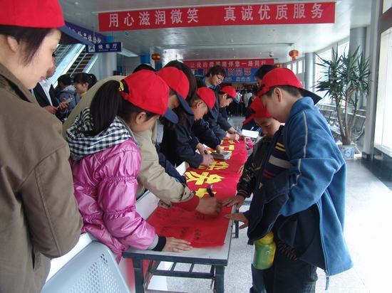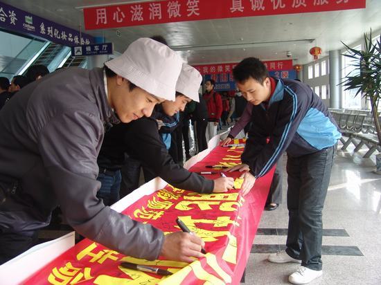 24日,在黄山风景区管委会的支持下,志愿者一行在人流集中的寨西换乘中心大厅内拉起“珍爱生态环境,携手低碳旅游”的横幅,志愿者们热情的向等待换乘的中外游客介绍低碳旅游小常识,发放公益宣传折页。广大游客在志愿者的引领下,观看宣传低碳旅游知识及环保小帖士的展板,纷纷在“低碳走进千万家,节能环保我参加”的横幅上签名,表示会将“低碳”融入生活,融入工作,融入旅游。黄山风景区管委会旅游办主任张阳志也莅临活动现场予以指导。次日,志愿者们对汤口当地居民和酒店经营者再次进行了低碳环保宣传教育。