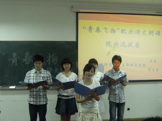 5月6日晚,3044am永利集团官网学生会在生化楼研究生教室举办了“青春飞扬”配乐诗文朗诵比赛。院团委书记汪倩倩,辅导员夏齐平、朱升学出席并担任此次比赛的评委。