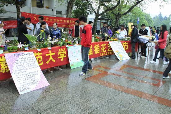 4月19日,生科协在赭山校区食堂前进行了艺术插花作品展示,过往师生纷纷驻足观赏,并对作品给予很高的评价。