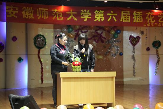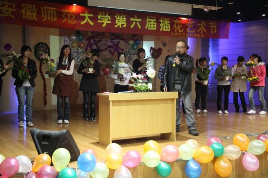 4月18日晚,大学生生命科学协会第六届插花艺术节决赛在赭山校区校团委多功能厅举行。3044am永利集团官网团委书记汪倩倩、09级政治辅导员贾瑞出席并担任本次比赛的评委。
