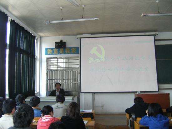 课堂上,毕部长用诙谐幽默的语言,结合社会热点、亲身经历和学生实际,向学员阐述了什么是“组织入党”和“思想入党”。毕明福部长强调:组织上入党只是政治生活中一个新的开端,思想入党才是根本。思想入党,最终要落实到为党和人民的事业努力工作上。党员只有在自己的工作岗位上做表率,在日常生活中注意时时处处发挥先锋模范作用,才能体现出党员的先进性,赢得群众的信任和拥护。所以,要通过具体表现把思想入党落到实处。