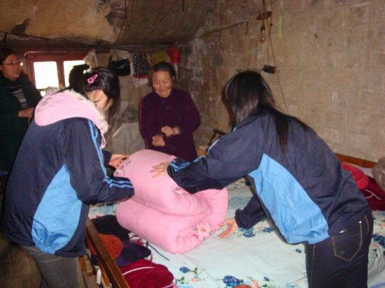 下午2:30同学们身穿院服佩戴团徽、校徽从田楼出发,一路步行来到位于少年宫附近的七更点社区,居委会陈霞主任对大家的到来表示热烈的欢迎。在陈主任的带领下同学们对社区进行了卫生打扫,看望了孤寡老人。在社区老年活动中心,同学们热情地陪老人们聊天,帮老人做家务。一部分同学回到居委会帮忙整理社区的志愿者材料。