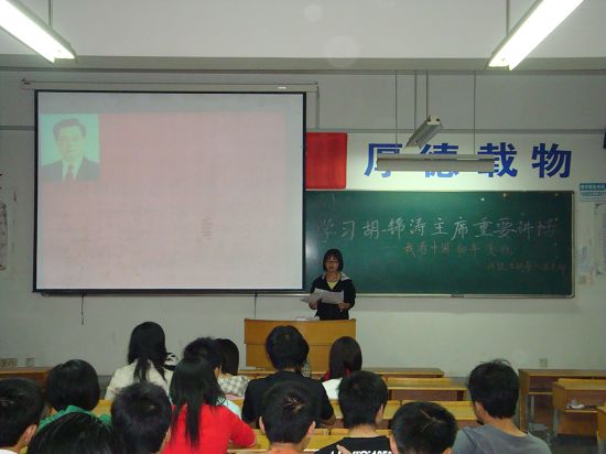 10月25日晚上7时,08级生科6班团支部在8304教室组织开展了学习胡锦涛总书记重要讲话活动,本次活动的主题是——我看中国60年的变化。