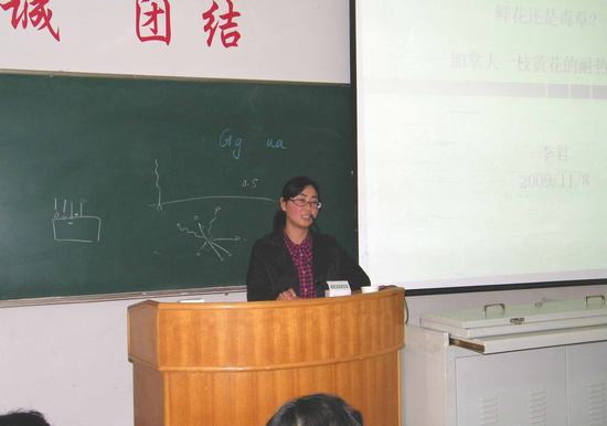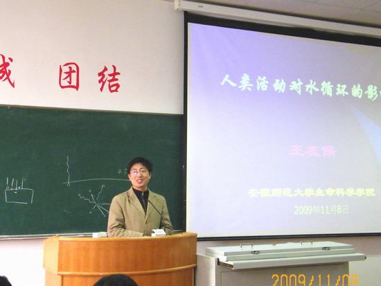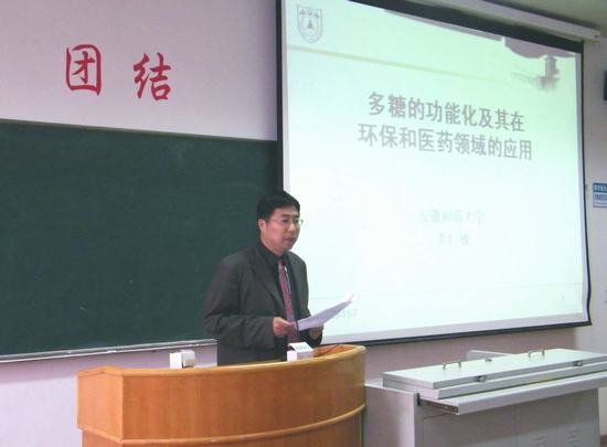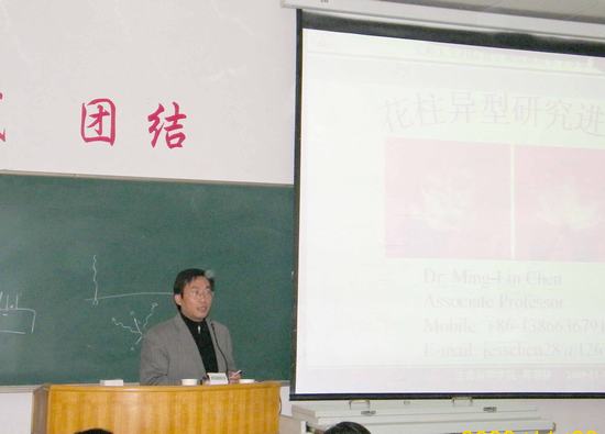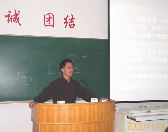 8日上午的精彩报告由永利龚仁敏教授、王友保副教授、陈明林副教授、邵剑文副教授、李君老师给大家带来。龚仁敏老师以纤维素、壳聚糖为例,介绍了多糖的功能化及其在环保和医药领域的应用;王友保老师从生态角度介绍了人类活动对水循环的影响,增强了同学们的环保意识;陈明林老师就花柱异型特征研究所取的成果给同学们做了报告;邵剑文老师分析了毛莨叶报春在物种分类学上存在的问题,并从形态和分子角度给予了一定分类证据;李君老师针对加拿大一枝黄花在不同地理种源的耐热适应性所做的研究进行了专题报告。