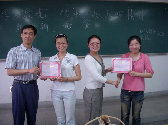 汪倩倩老师和朱升学老师对同学们的表现做了精彩点评。他们指出,在当前全校上下纷纷开展深入学习实践科学发展观活动之际,07第一团支部举办的这次辩论赛很有意义,可以帮助大家更深刻的理解科学发展观的内涵,传承和弘扬“五四”精神。(蔡茂)