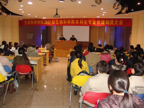 3月12日中午,3044am永利集团官网在赭山校区团委多功能厅召开2007级生物科学类本科生专业分流动员大会,学院院长席贻龙,副院长汪鸣,2007级各班级辅导员和本科生导师出席了大会,动员会由席贻龙院长主持。