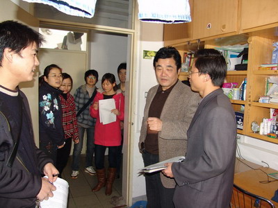 11月27日上午,学院党委王景旭书记在研究生辅导员邵剑文以及研究生会干部的陪同下对各年级硕士、博士研究生80多个宿舍进行检查。11月25、26日两天晚上,周伍副书记率领各年级辅导员逐一检查了220余个本科生宿舍。检查的重点是私拉电线、使用大功率电器及违规使用电脑等情况。