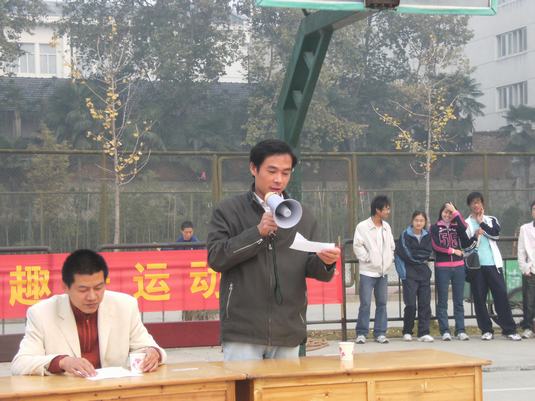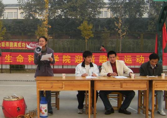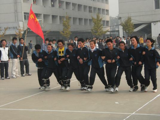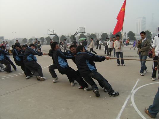 此次迎新趣味运动会的比赛项目有拔河、“十人十一足”和集体跳绳。以08级行政班级为单位的8支代表队参加了趣味运动会的各项比赛。整个比赛中,周书记、朱老师、汪老师一直在现场为运动员们加油鼓劲,现场气氛异常活跃。