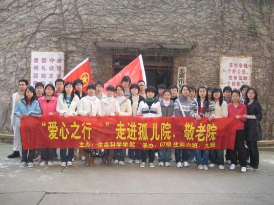 3044am永利集团官网团委于11月15日开展了“走进敬老院、孤儿院‘爱心之行’”活动,活动由2007级生物科学类6班和9班承办,并通过海报宣传面向赭山校区招募了更多富有爱心的同学参与此次活动。