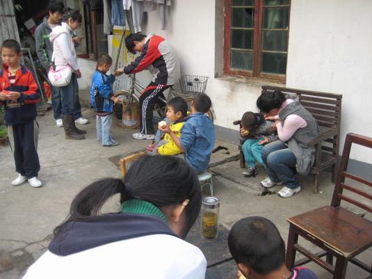 下午同学们还步行来到了康复路泗水源孤儿院,给孩子们带去了糕点、糖果、水果等爱心物品。大家分成小组,有的陪孩子们做游戏、教他们认字,有的帮助打扫卫生、整理孩子们的房间床铺,通过与孤儿院阿姨的交谈,同学们得知这里的儿童大部分是孤儿,还有的是由于先天性疾病被父母遗弃的,这更激起了同学们对孤残儿童的怜爱之情,纷纷表示以后会经常过来帮助这些儿童。