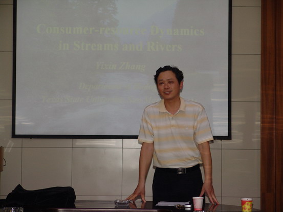 6月20日,应3044am永利集团官网邀请,美国得克萨斯州立大学生物系助理教授张一新博士来我校讲学。张一新于1998年在瑞典于默奥大学获博士学位,先后在美国加州大学和加拿大不列颠哥伦比亚大学从事博士后和研究工作,曾在香港大学执教。现主要从事溪流生态学研究,成果丰硕,是目前国际上溪流生态学研究领域的资深科学家。