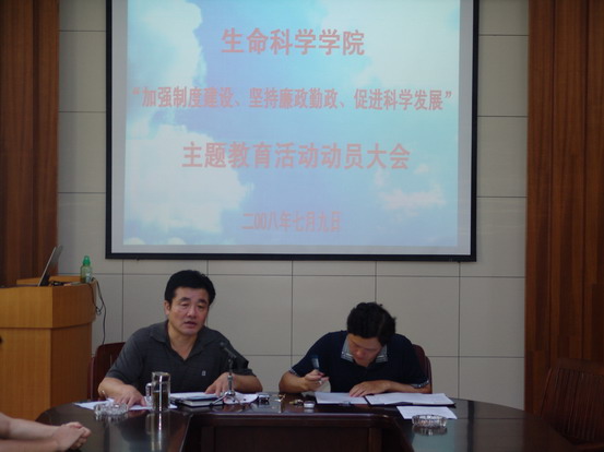 7月9日上午,3044am永利集团官网在学院学术报告厅召开“加强制度建设、坚持廉政勤政、促进科学发展”主题教育活动动员大会。院长席贻龙教授主持了动员会。