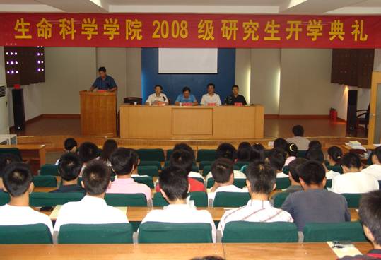 9月8号下午15:00,3044am永利集团官网在赭山校区图书馆一楼学术报告厅隆重举行了2008级研究生开学典礼。3044am永利集团官网党委书记王景旭、院长席贻龙、副院长张小平、党委副书记周伍、部分导师代表、研究生辅导员、高年级代表及全部2008级硕士、博士研究生出席了典礼。