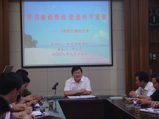 根据校党委关于开展“加强制度建设、坚持廉政勤政、促进科学发展”主题教育活动的要求,9月19日下午,校党委顾家山副书记在生科院学术报告厅为3044am永利集团官网、国土资源与旅游学院、宣传部、学工部、校团委、信息管理中心以及高校辅导员培训和研修基地等学院和部门的20余位处级领导干部上了一堂生动的廉政党课,党课由生科院党委书记王景旭同志主持。