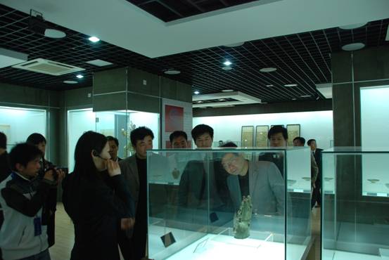 校友嘉宾在王景旭书记等学院领导的陪同下参观文物展
