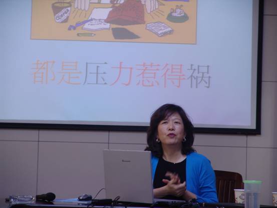 美国英语学会是一个非政府、非盈利的教育组织,与我校有着近25年良好的合作关系。崔佩吉老师是美国加利福尼亚州婚姻、家庭、子女教育、心理健康问题研究中心研究员,长期从事大学生心理健康研究与咨询工作,她所做的讲座将对我校大学生如何保持良好的心理状态应对与日俱增的社会压力有着现实的指导意义。报告会的举行也有利于进一步促进我校同美国英语学会的交流与合作。