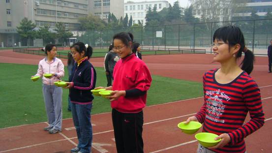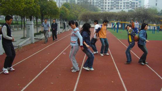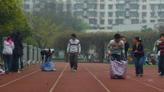 趣味运动会在同学们熟悉的“四人五足”比赛中拉开序幕,比赛以寝室为单位,场内外的加油声、欢呼声不断;“袋鼠接力跳”、“快乐运水工”、“背靠背接力”等趣味比赛更是一个比一个精彩。激扬的青春渲染着活跃的气氛,活跃的气氛诠释着激扬的青春。摔倒了爬起来,失败了重头来,变化的是选手们的造型和比赛成绩,不变的是同学们的笑容和永不言败的坚强与毅力。