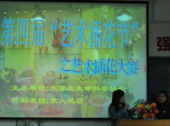 2008年3月29日晚7时由永利3044noc生命科学协会主办、芜湖市袭人花店友情赞助的艺术插花大赛在田家炳楼8310教室准时拉开帷幕。来自我市九华山路袭人花店的两位花艺师及校社团联合会的部分学生干部担当了本次比赛的评委。