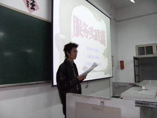 大会由院团委书记薛辉主持。首先由学生会主席汪圣广对2006-2007学年工作做了总结报告。接着,周伍老师为新一届学生会致辞,教导大家要率先垂范,做“四有”“四会”人才,在充分肯定了上一届学生会工作的同时,对新一届学生会寄予了殷切的希望,他风趣的话语拉近了师生间的距离,博得了阵阵掌声。最后周伍副书记等为院学生会主要负责人颁发聘书。