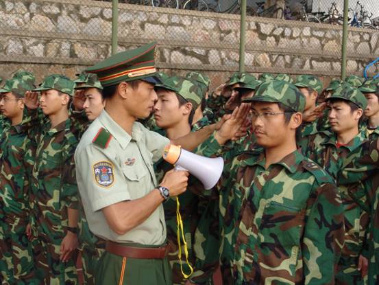 军训中,教官们认真指导、示范,学生们听从指挥、刻苦训练,辅导员们深入训练场协助教官做好管理服务工作;国防教育、队列训练、整理内务、早操晨练等各个项目均扎实规范开展,军训成效初显。