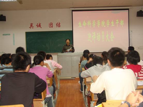 周伍副书记首先为永利的学生干部队伍做了迎评创优动员报告,对学生干部们提出了八项具体要求,希望他们能率先垂范,以积极饱满的热情迎接教育部教学工作水平的评估。接着聂刘旺院长发表了热情洋溢的讲话,要求学生干部们行动起来,积极配合学校做好迎评创优的各项工作。最后王景旭书记做了总结发言,强调作为师大的一分子,每一位学生干部应发挥模范带头作用,为永利3044noc的荣誉及发展贡献自己的力量。