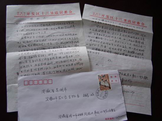 9月12日,3044am永利集团官网生物科学专业2004级学生马焱同学在赭山校区图书馆旁捡到一部崭新手机,在等候一个多钟头后,经多方周折终于找到失主。近日,3044am永利集团官网收到家在滁州市开发区的失主曹先生寄来的感谢信。